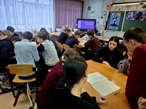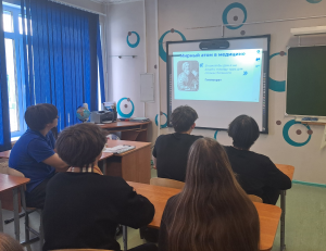 В 9-м классе прошёл «Атомный урок» на тему «Медицина будущего». Школьники познакомились с историей создания мирного атома, узнали, как атомные технологии применяются в разных сферах жизни, и отдельно рассмотрели направление ядерной медицины. На занятии старшеклассники обсудили, как мирный атом используется для диагностики и лечения тяжёлых заболеваний и какие профессиональные перспективы открывает эта область.
