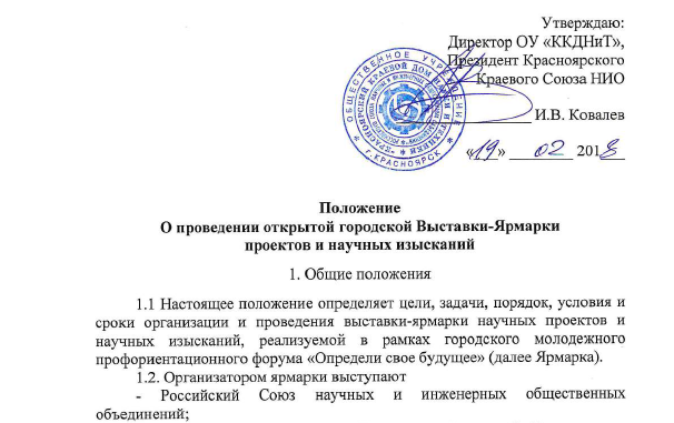 17 марта 2018 года в рамках Красноярского Городского молодежного профориентационного форума «Определи свое будущее» и VII Всероссийской Недели высоких технологий и технопредпринимательствав в Доме науки и техники пройдет очный тур Открытой городской Выставки-Ярмарки проектов и научных изысканий школьников.Школьники города представят свои проекты в форме стендовых докладов. Оценивать проекты будут представители ведущих предприятий и вузов, а также сами участники.